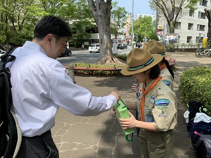 緑の募金に先立ち、ビーバー隊・カブ隊の入団・入隊のやくそくの式に参加しました