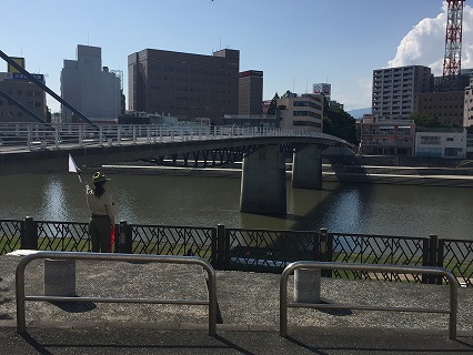 ここで,最後の課題「狩野川の向こう岸に手旗で班長の氏名を送れ」です。