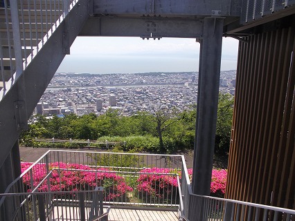 「展望台から山頂、香陵台(五重塔)の方位角を計測し,