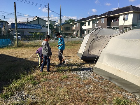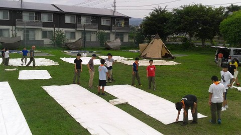 どの班も手際よく設営します。新入班員も戸惑うことなく進めています。
