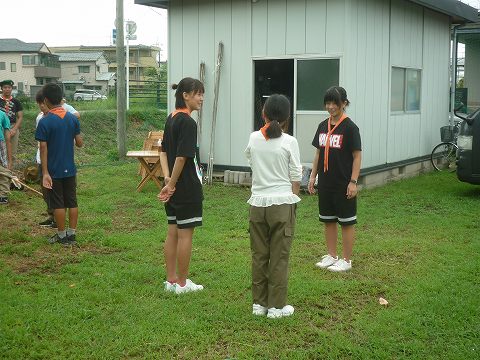 火熾しゲーム、中3スカウト2名と小6~中2スカウト混合班