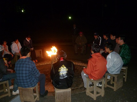 皆で火を囲む