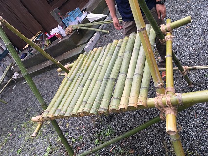 あいにく雨ですが、室内ではできないので、雨具を着用して