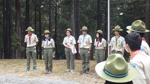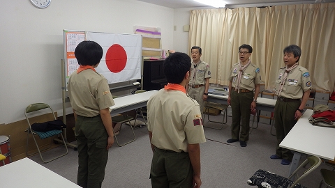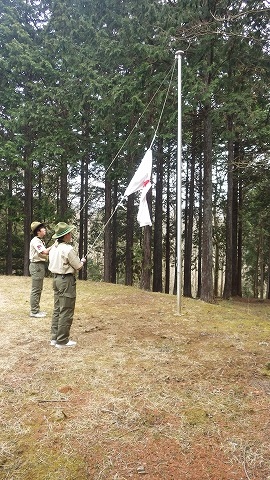 指導者はいませんが、スカウトらしく開所式のセレモニーは、きっちり行います。