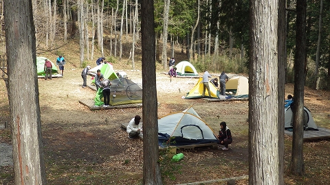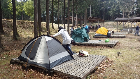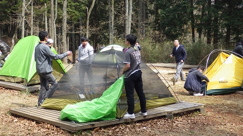 各自で持ち寄ったテントを立てて行きます。