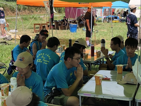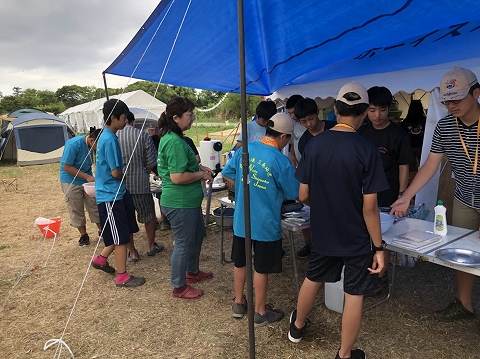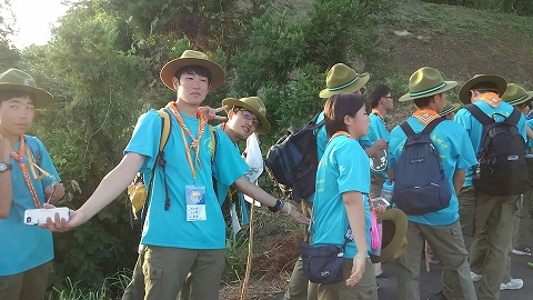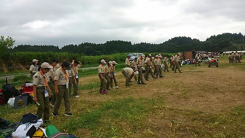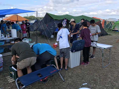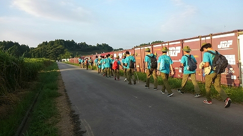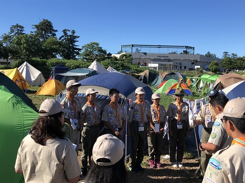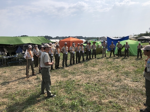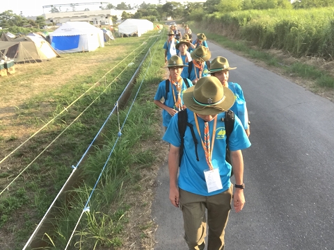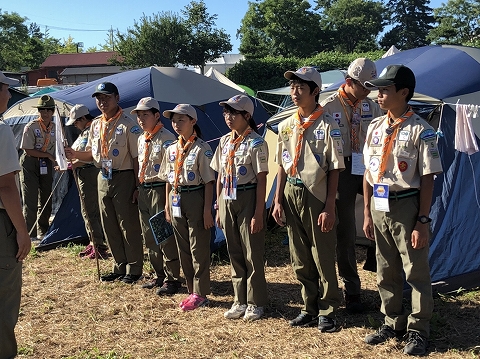 毎朝、指導者と一緒にボーイ隊の点検に行きます。