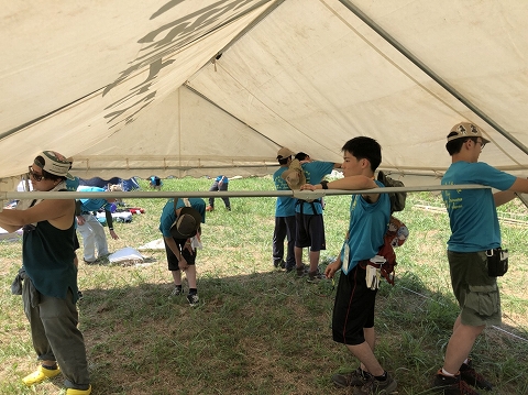 指導者、ローバー、ベンチャーのテントはあっという間に