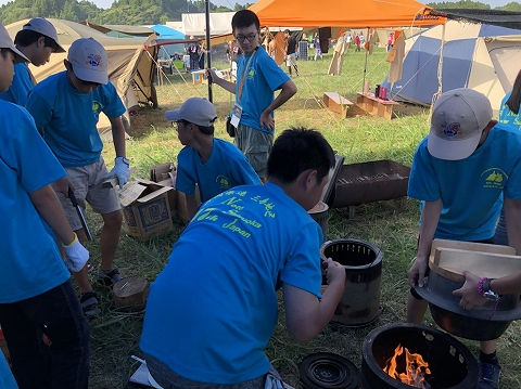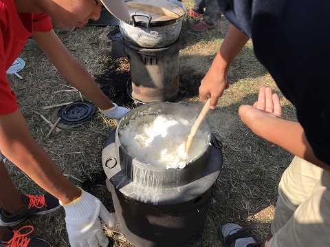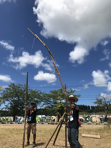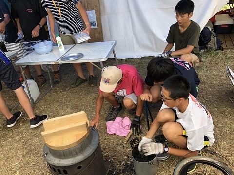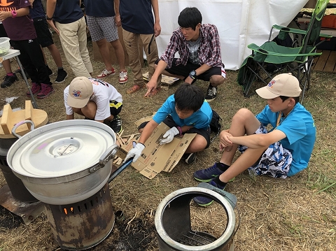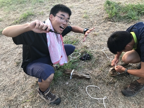 午前中に、ボーイ隊班サイトに出向き、立ちかまど作りの実技指導